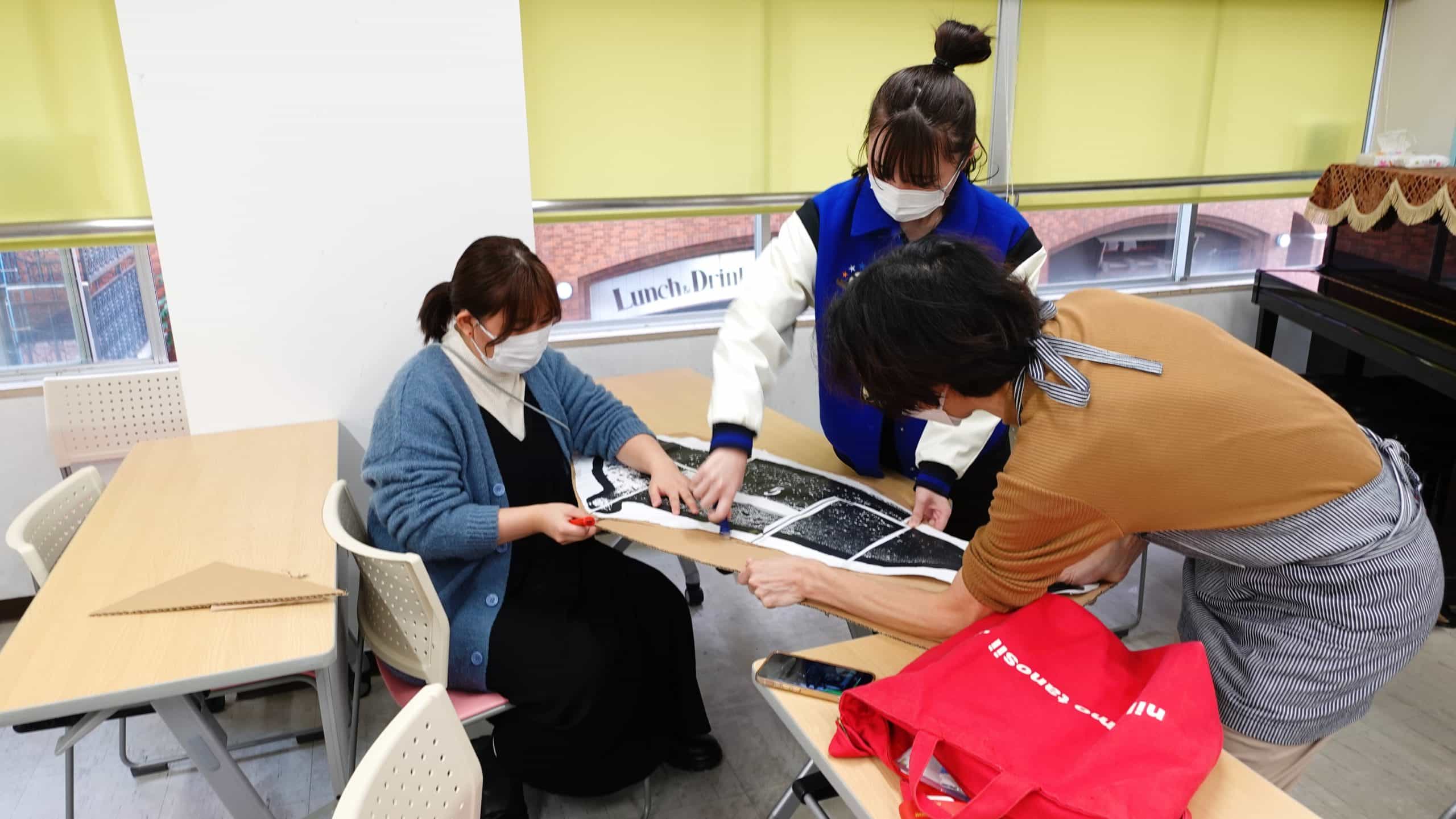 昨日の授業にて、段ボールとカッターを使用し作り上げた作品を