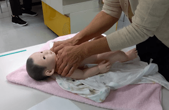 学生さんたちも赤ちゃん人形を使って体験しました!