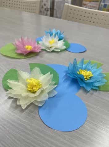 スイカの風鈴とスイレンと朝顔です。スイレンは5月頃に咲く温帯性と7月頃に咲く熱帯性の二種類があるそうですよ。ぜひ見に来てくださいね!