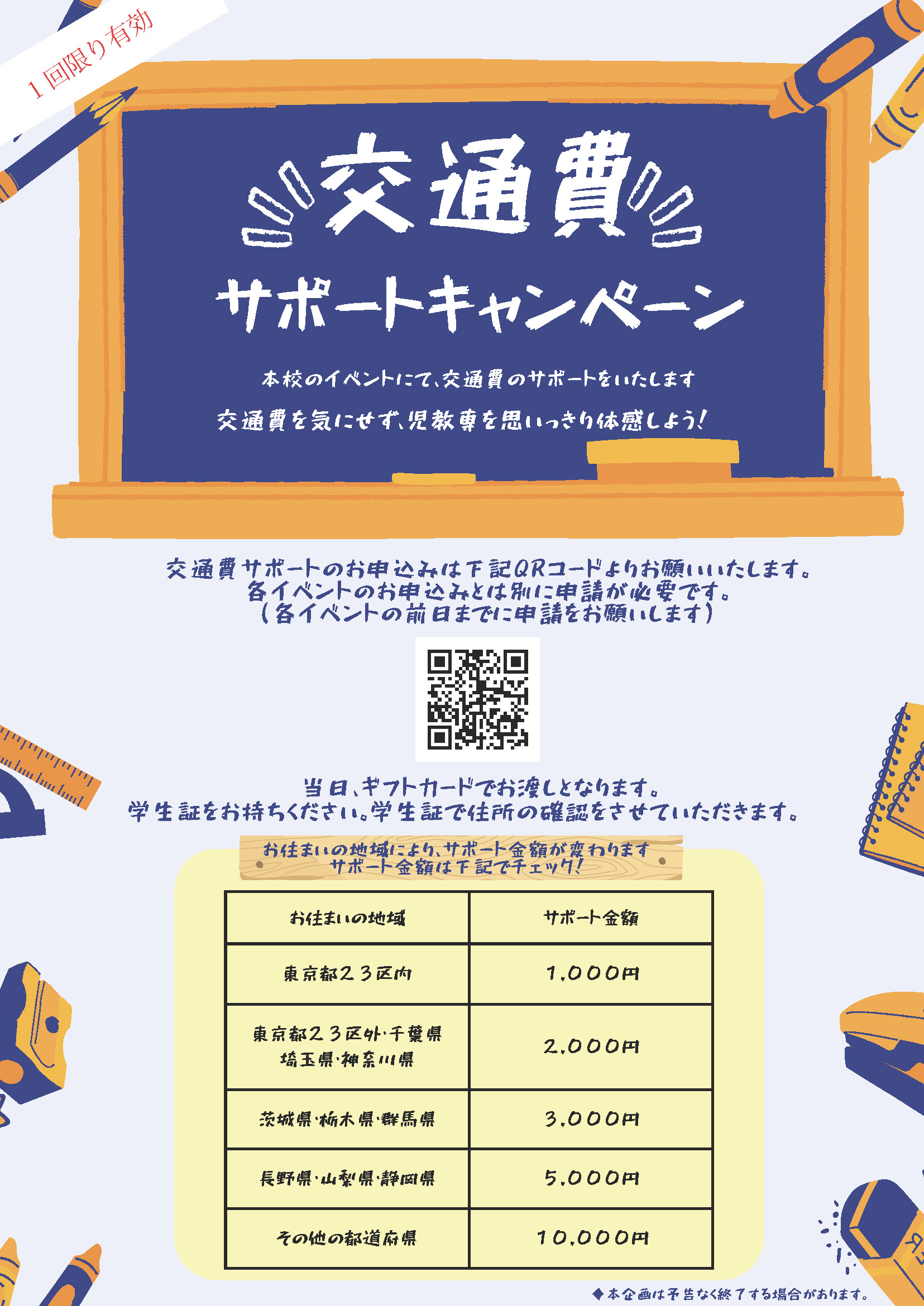 進路活動応援、交通費サポートキャンペーン♪