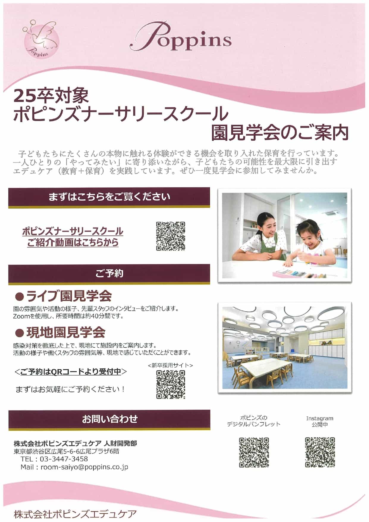お知らせ就職相談室より~ライブ園見学(ポピンズエデュケア)~