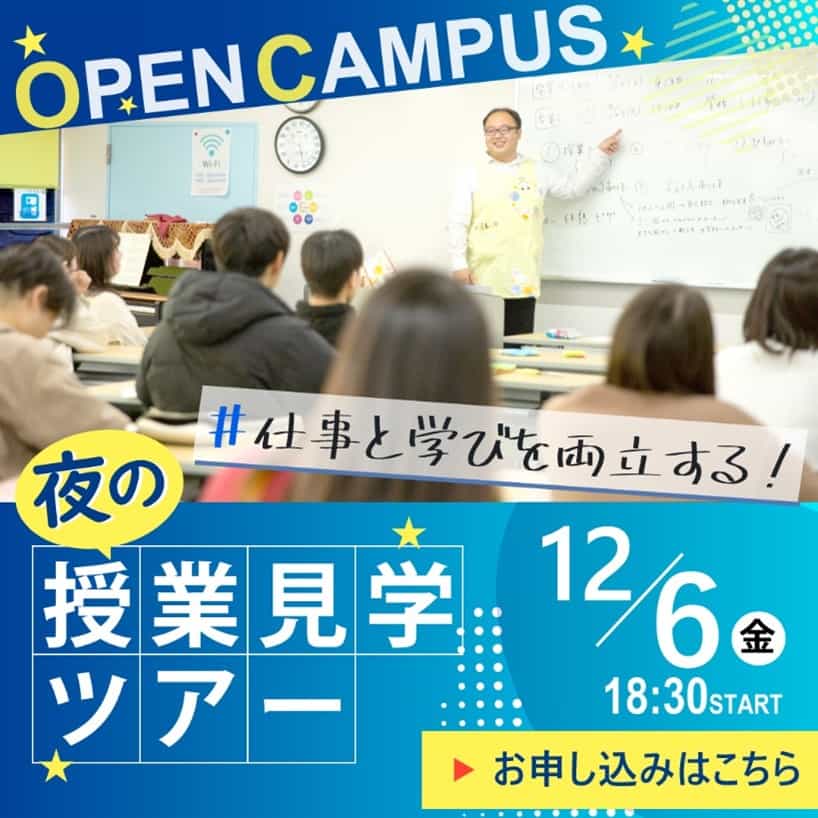 お知らせ12/6(金)18:30~ 夜の授業見学ツアー開催!